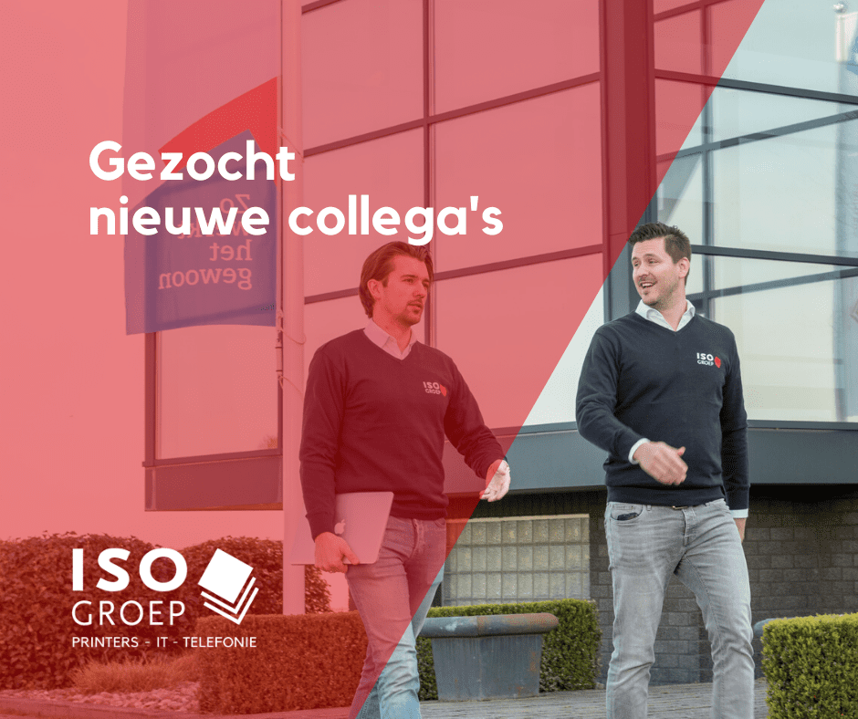 ISO Groep zorgt ervoor dat klanten fijn kunnen werken met hun printers, IT en telefonie. Dat gaat heel goed, want we hebben ruim 2000 tevreden klanten in heel Nederland. Van scholen en apotheken tot bedrijven en non-profit instellingen. Daarom hebben we ook versterking aan het front nodig. Wij zoeken geregeld nieuwe mensen voor onze teams: